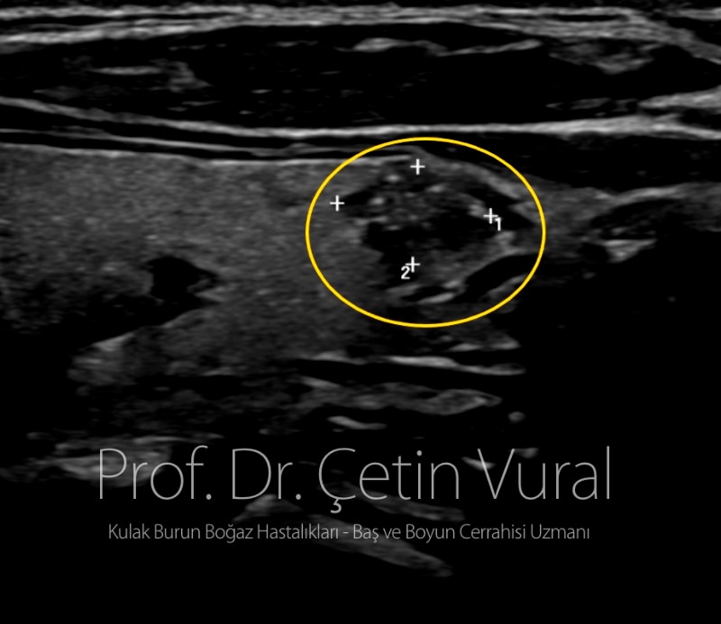 Hastamıza sinir monitör cihazı kullanılarak tiroid bezini sol yarısının tamamen çıkartıldığı bir ameliyat uygulandı. Çıkartılan dokunun histopatolojik incelemesinde 8mm ve 10mm çapında iki ayrı papiller kanser odağı saptandı. Bu odaklardan bir tanesi tiroid içi lenfatik (ak kan damarları) yoluyla yayılmış görüntüsü vermekteydi.